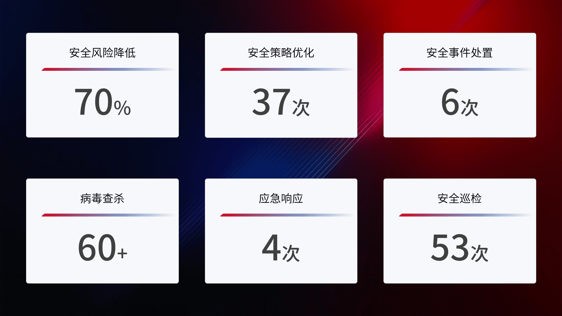 综合报告与文档服务: 定期提供安全事件处置报告、、、周/季度总结报告和年度总结报告;详尽的文档服务可帮助客户了解网络安全状况,,,支持决策制定和流程优化。。。。